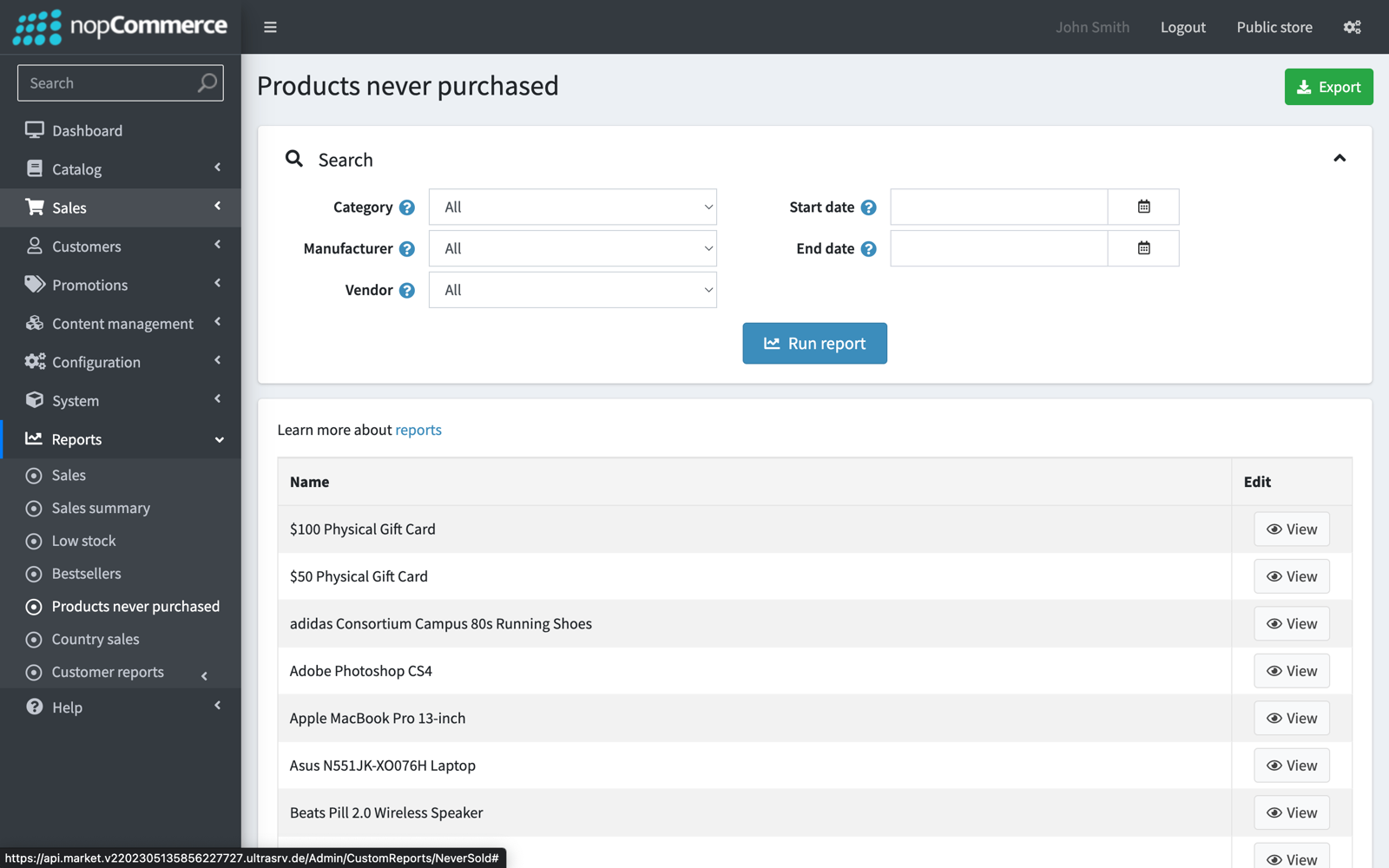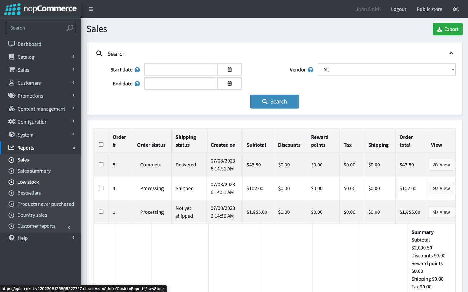 Available reports for export: Sales Sales Summaries Low Stock Bestsellers Products that have never been purchased Country Sales Customer Reports Features: Add a financial report named Sales for Sales Analysis. Export as Excel filtered reports. Export reports as Excel(.xlsx) files and download them locally. Easy to install and configure.